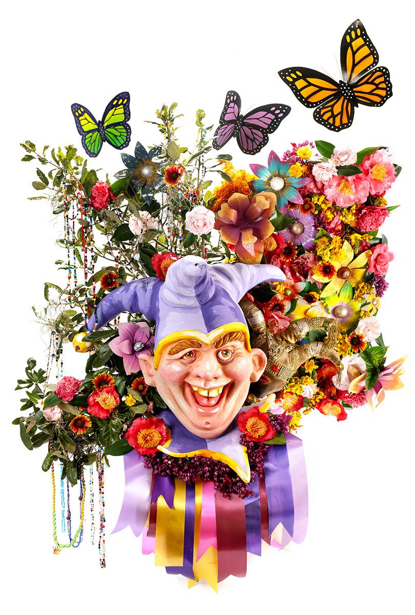 This series is a visual love letter to New Orleans. It is a new project started over the 2025 summer, that I have been thinking about for a long time. The work features bouquets of mostly locally grown flowers and plants surrounding historical and cultural elements of New Orleans. The arrangements are designed and constructed by RHR. often in collaboration with horticulturalist Rob Joy.